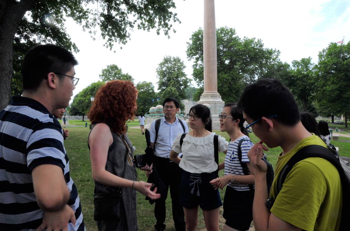 在西点军校,同学们和西点军校的接待人员友好的交流