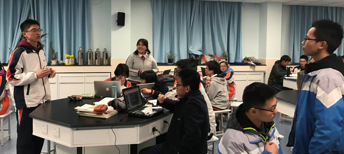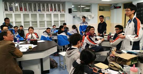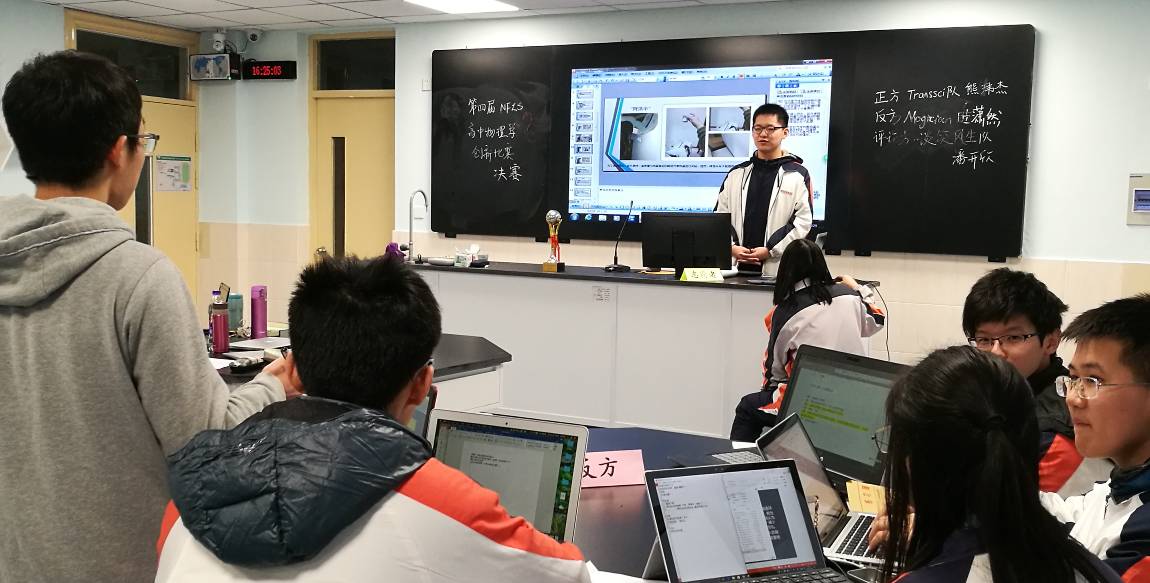 经过抽签,6个队分为两组,于11月23日下午在实验室D201、D202进行小组赛。本次我们有荣幸的是江苏省前黄高级中学派出“攀登者队”参加第2组的比赛。每小组比赛分为3轮,每个班级代表队依次当正方、反方、评论方进行比赛。每轮比赛评委由物理组老师和以前参加过国家(际)比赛的高年级学生社团骨干。