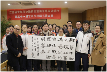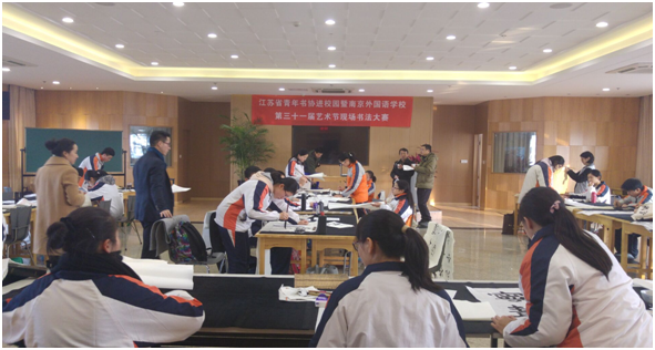 为继承和弘扬传统文化精华,展示中华书画艺术的伟大魅力,由校学生处、教学处、艺术组承办的江苏省青年书协进校园暨77779193永利官网第三十一届艺术节现场书法大赛,于12月14日在行政楼7楼多功能厅举行。 现场集聚了南外各个年级的学生书法高手,大家现场挥毫,展示自己的书法特长。同学们的作品包括端正的楷书、古意十足的隶书、潇洒飘逸的行书等。书法高手们随性挥洒的身影,连同空气淡淡的墨香,形成一幅温婉恬静的画面。比赛之后,江苏省青年书协主席李双阳、吴勇两位老师现场对学生作品进行点评,同学们得以与书法家面对面交流,收获颇丰。