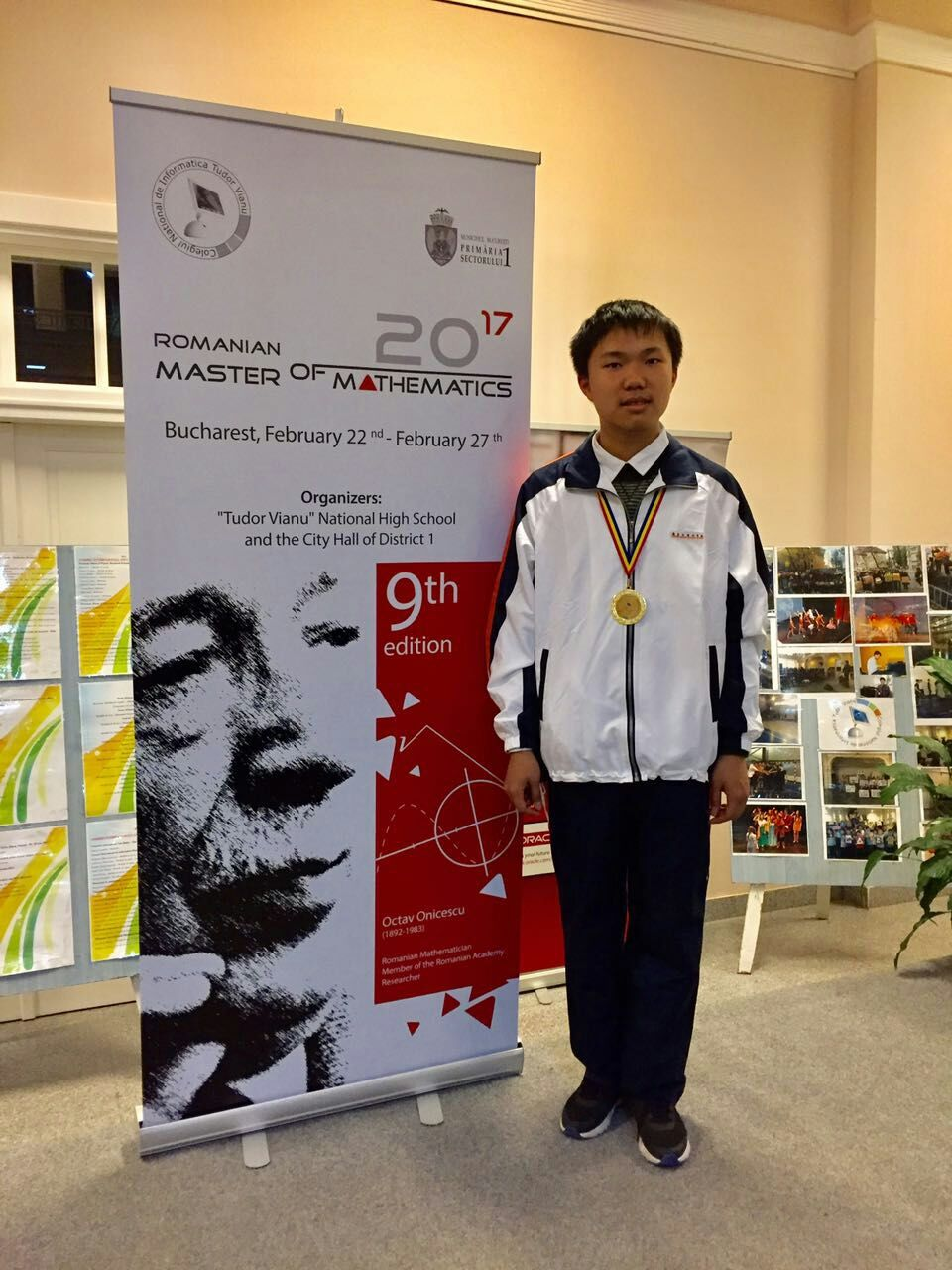热烈祝贺永利官网丁力煌同学以唯一满分的优异成绩荣获2017罗马尼亚数学大师赛金牌第一名。以永利官网丁力煌,高轶寒,朱心一为主力的团队获得团体总分第三名的好成绩。