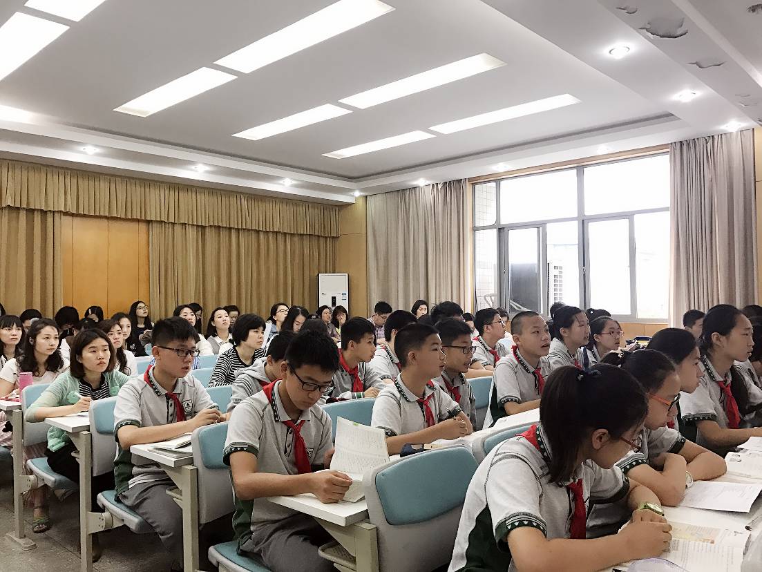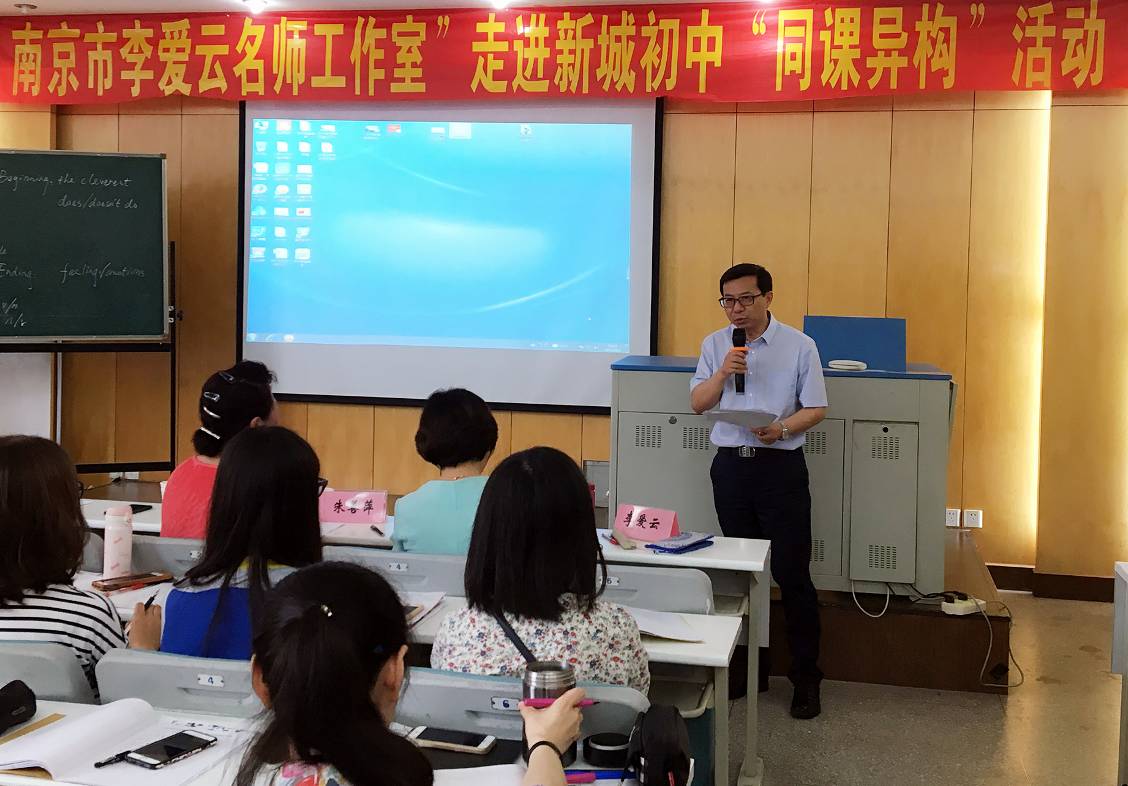 2017年6月5日,“南京市李爱云名师工作室”走进南师附中新城初中举行了一次“品读英文诗歌,提升阅读素养”的主题活动。新城初中的李慧玲老师与来自77779193永利官网的吴蓥老师分别对初一学生开设一节诗歌阅读欣赏课;教授级中学英语高级教师、省教研室何锋副书记和全国人大代表、教授级中学英语高级教师、江苏省英语特级教师朱善萍老师亲临现场指导点评。参与此次教研活动的除了工作室成员外,还有南外集团和建邺区的部分英语老师。本场活动由新城初中教科室主任乐建新老师主持。