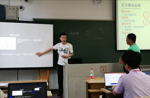 我选择的是第10题拉开玻璃和第16题同步节拍器,本以为这两道题可能较为简单的我在进行了深入研究后发现是自己想得太简单了,但是在学长和队友的帮助下最终完成了正方报告。比赛中我做了两次第十题的评论方,第二次做报告时确实有很多不足需要提高,同学和老师也向我认真指出了我的问题所在。YPT不同于物理考试,它注重的不是标准答案,而是得到自己研究结论的过程,前期的实验理论的准备都十分重要,而这对我而言是一次非常珍贵的锻炼机会。比赛过程中队员们互相帮助,一起全神贯注的听正方报告,递小纸条,帮忙做反评的报告,这都体现了YPT是一个注重团队合作的比赛。每轮的比赛结束,我都会看到队员仍在与评委进行学术交流,解释自己的观点并向评委老师学习,这更加体现队员们注重的是科学研究,而不是比赛成绩本身。