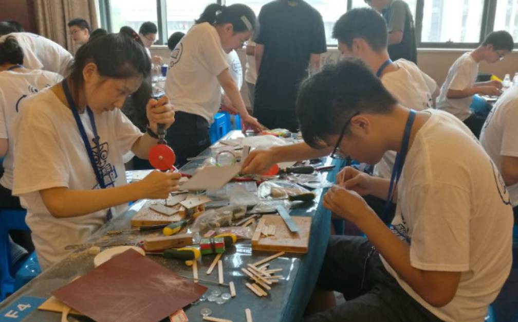 紧张的设计制作现场——南外一队同学在钻孔、在割据,在加紧制作!