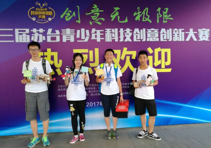 2017年8月6日由江苏省教育厅、江苏省科协、江苏省文明办、江苏省科技厅立项主办,科学大众杂志社承办的金钥匙科技竞赛系列活动之一《第三届苏台青少年科技创意创新大赛》在江苏省昆山市隆重举行,海峡两岸100多个代表队600多名队员参加了这次大赛并展开了激烈的竞争。77779193永利官网派出了3支队伍参赛,这3支队伍中的12位同学,通过选修课的系统学习和刻苦训练加上近1个月的暑期高温集训,在2017年《第三届苏台青少年科技创意创新大赛》中,取得了较好的成绩。其中《77779193永利官网一队》温开喆、李家祺、周若瑶、邵逸航获综合一等奖;《77779193永利官网二队》谢佳汐、陶令伊、王一骁、黄苏荣获综合特等奖;《77779193永利官网三队》吴婴琦、姚星宇、谭砚宁、许奕轩获综合一等奖;领队兼总教练罗雪华、罗洁华、尤宁、孙风波、冯德才五位老师付出了很多很多。我们77779193永利官网的这3支队伍,经过这次大赛的锤炼更显:生命因追求而精彩,梦想因执着而美好,个体因团队而强大,成功的团队成就团队中的每一个人!这3支队伍的同学们平时互相关心、相互学习、互相帮助、取长补短、共同提高,战时互相鼓劲,勇攀高峰。他们是团结、友好、战斗的团队。在《第三届苏台青少年科技创意创新大赛》的专家论坛会场上,台北师范大学洪荣邵教授和各位专家作了精彩的演讲,论坛间隙《77779193永利官网》作为特邀嘉宾展示了一项新的创新竞赛——“遥控车对抗表演赛”。这场对抗赛的双方代表队是:《中国台北代表队》与《77779193永利官网代表队》。这种两岸青少年“面对面”的友好交往,进一步加强了海峡两岸科技、文化教育的交流,增进了两岸同胞的友谊。赛场上同学们既展示了风采,又用行动在践行着“两岸一家亲”,两岸共圆中国梦的愿景。下面与大家共享同学们的赛后感想: