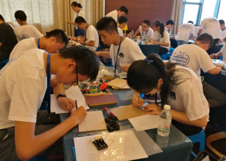 比赛开始了:一队队员在抓紧设计、在画图、在思考下一步工作……