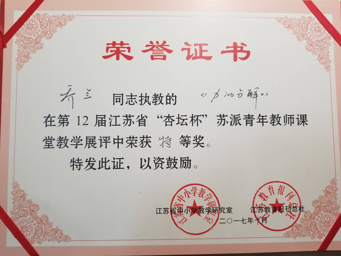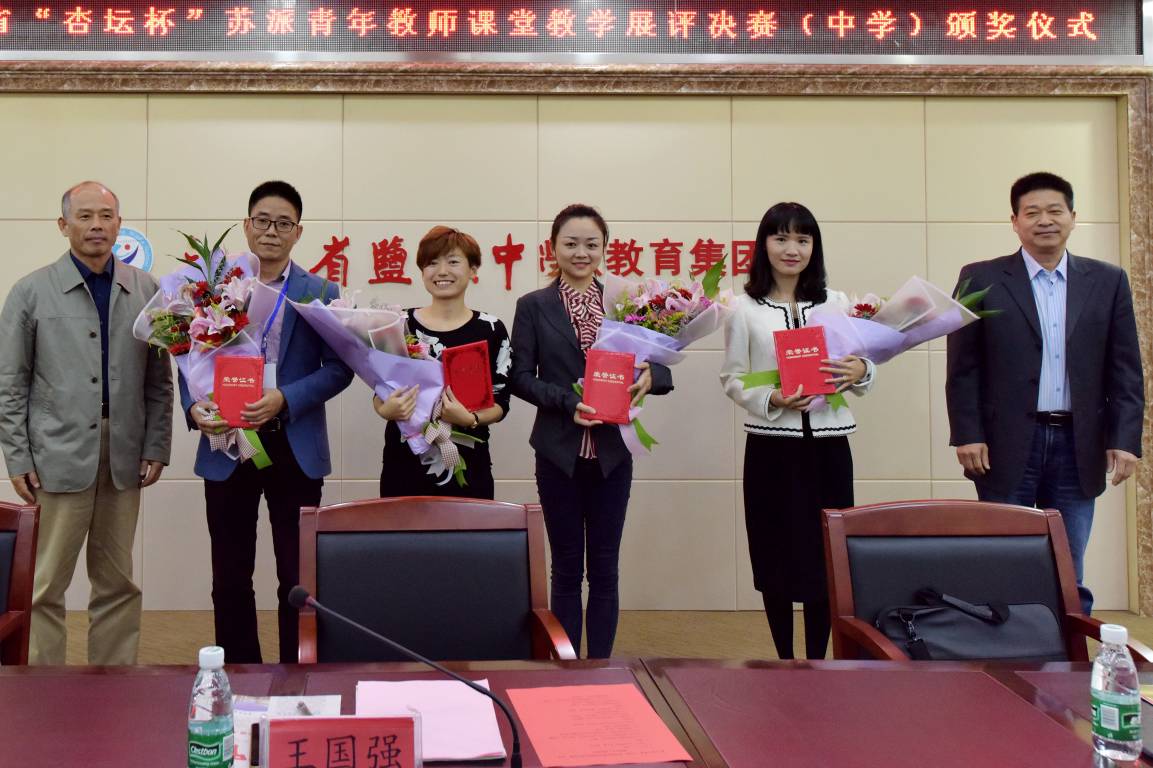 永利官网物理组乔兰老师于2017年10月12日至13日期间,在杜菁老师、邓佳卉老师、徐胜媛老师的陪同下,带着大量实验器材,驱车前往江苏省盐城中学,参加了由江苏省中小学教学研究室、江苏教育报刊总社联合举办的第十二届江苏省“杏坛杯”苏派青年教师课堂教学展评决赛。