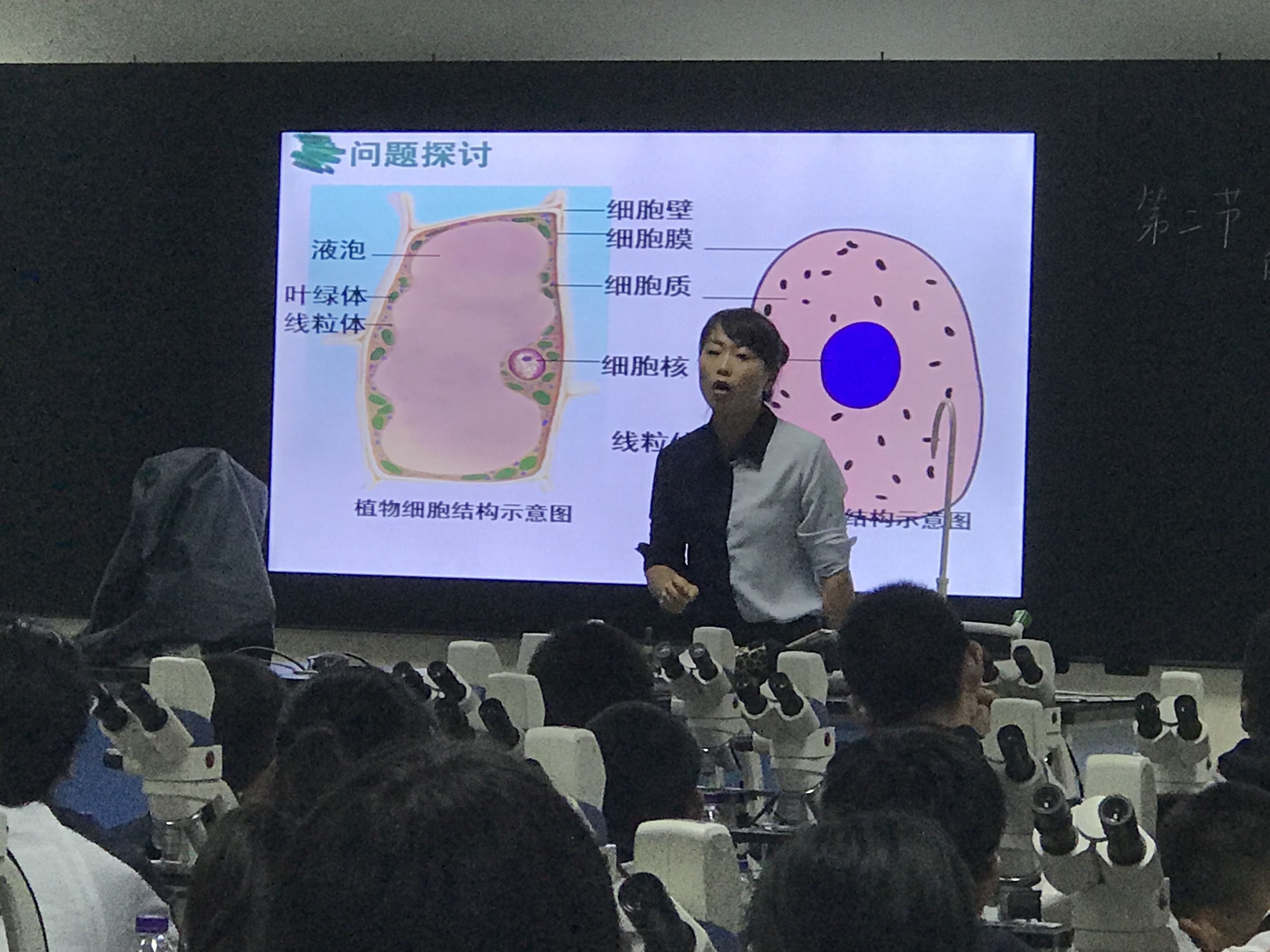 首先,永利官网马媛媛老师开设了一节初一实验课《人和动物细胞的结构与功能》。马老师用自己制作的实验操作视频,指导学生规范操作,并利用现代教育技术手段将学生的操作、绘图等即时呈现,效果显著。