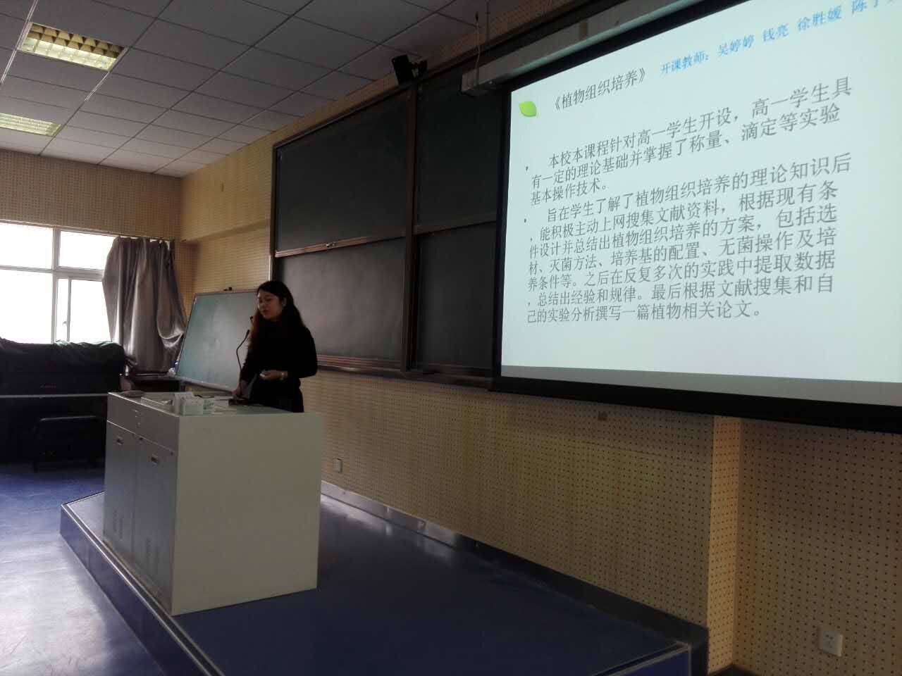 永利官网吴婷婷老师,开设了《开展中学生物第二课堂的教学实践》的微讲座。吴老师结合自身的教学,着重介绍了第二课堂的开展类型、内容、组织形式及意义。从制作植物细胞模型、病毒模型、染色体变异模型到生物课前演讲、“遗传病知多少”调查活动,再到校本课程植物《植物组织培养》和《灵敏的触角——传感器》,丰富多彩的第二课堂的活动给所有到场的老师留有深刻的印象。