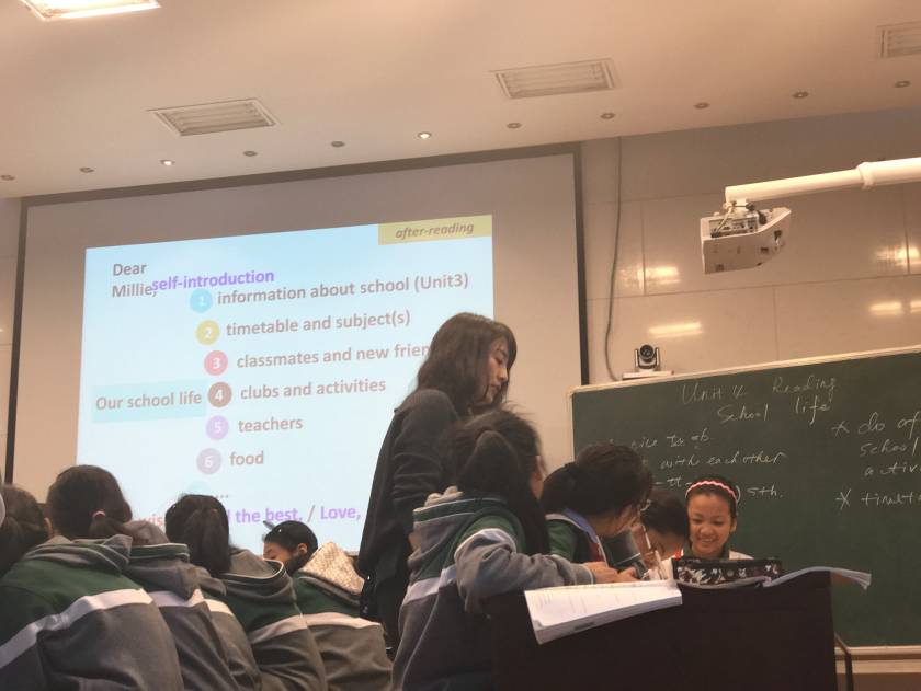 吕渊老师的授课内容是牛津7A第四单元Reading。围绕School life这一主题,吕老师还阅读于学生,从预测内容到阅读大意到注意细节再到理解深意,环环相扣设计任务,让学生自己发现和实践语篇的阅读技巧,注重文章内涵的发掘和对文本深层次的理解。除此之外,吕老师还和学生畅聊他们对于初一新学校生活的感受,充分调动学生积极性,启发他们从各方面表达自己、培养思辨能力,树立正确价值观。