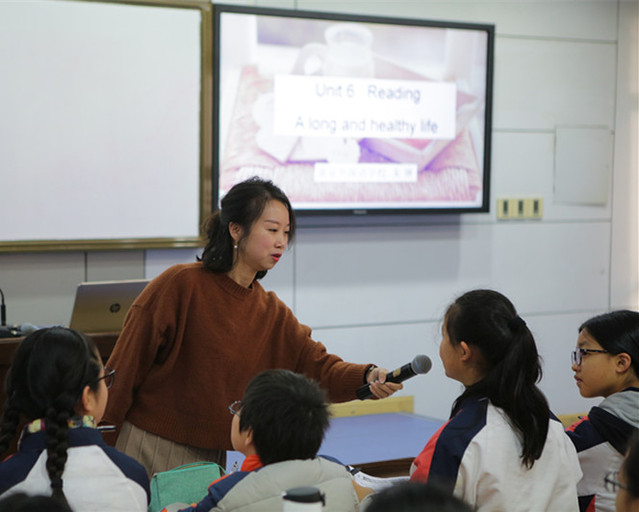 永利官网朱琳老师开设了一节公开课。公开课的话题选自教材English in mind 第一册第六单元,主要探讨如何健康长寿。这节阅读课教学目标明确,以学生熟悉的食物作为切入点激起学习兴趣,阅读课课型明显,采用了分层阅读,阅读策略以任务型教学为主,明确每个环节的教学目的。朱老师用关键词将文本以思维导图的形式呈现在黑板上,配以课件中生动形象的图片,为学生创设了一个鲜活的语境,学生的思维得以充分激活。在提问和追问环节,老师和学生之间的生成性互动给大家留下了深刻的印象。在师生互动中,学生们充分感受了文化的多样性——饮食中的多元文化。