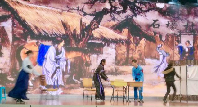 1班表演的《花木兰》与11班的《石壕吏》都以战争为背景,戏剧矛盾突出,人物个性被同学们演绎得很精当,传递了古时战争年代的生活风貌;
