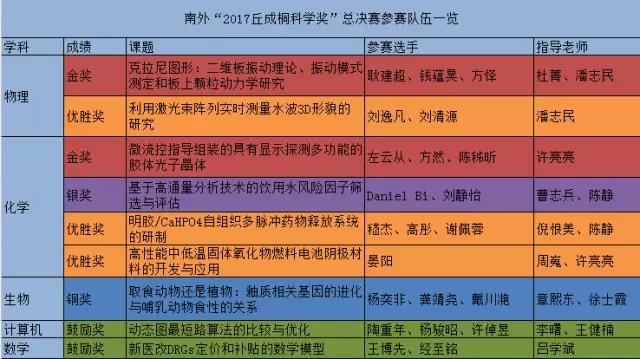 本届“丘成桐中学科学奖”竞赛,南外入围总决赛的9个参赛队是: