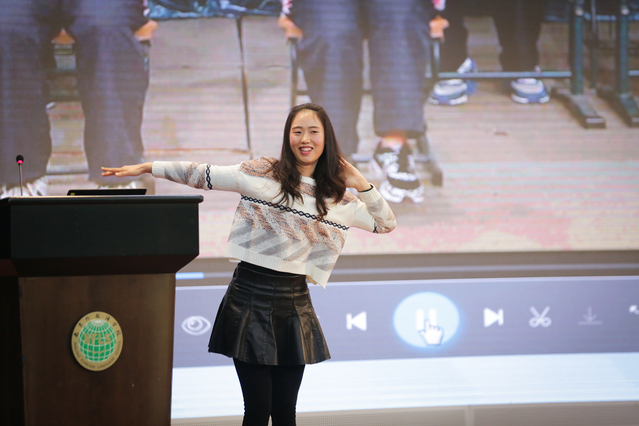 张利老师汇报的主题为 《初中生室内课间操实效性研究》。