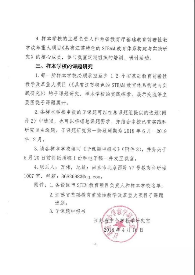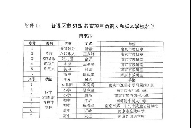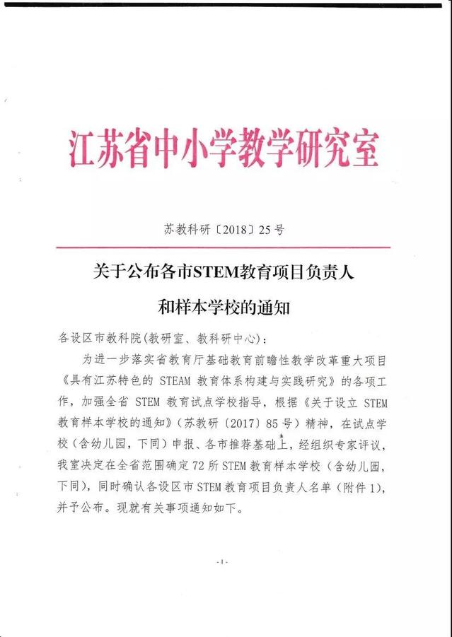 近日,江苏省中小学教学研究室正式发布了关于公布各市STEM教育项目负责人和样本学校的通知,永利官网被列为省STEM样本学校,朱征副校长被列为STEM教育项目负责人。