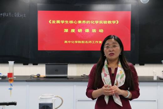 最后,主持人陈懿老师对本次研讨活动进行了总结,充分肯定了此次深度研课活动的实效性。她认为实验教学是培养学生化学核心素养的关键,开展“素养为本”的探究实验教学课例研究,深化实验与现代技术的整合,培养学生的创新精神和实践能力,促进学生核心素养的发展。期望通过名师工作室的活动,发挥名师的示范、引领和辐射作用,助推青年教师的专业发展。