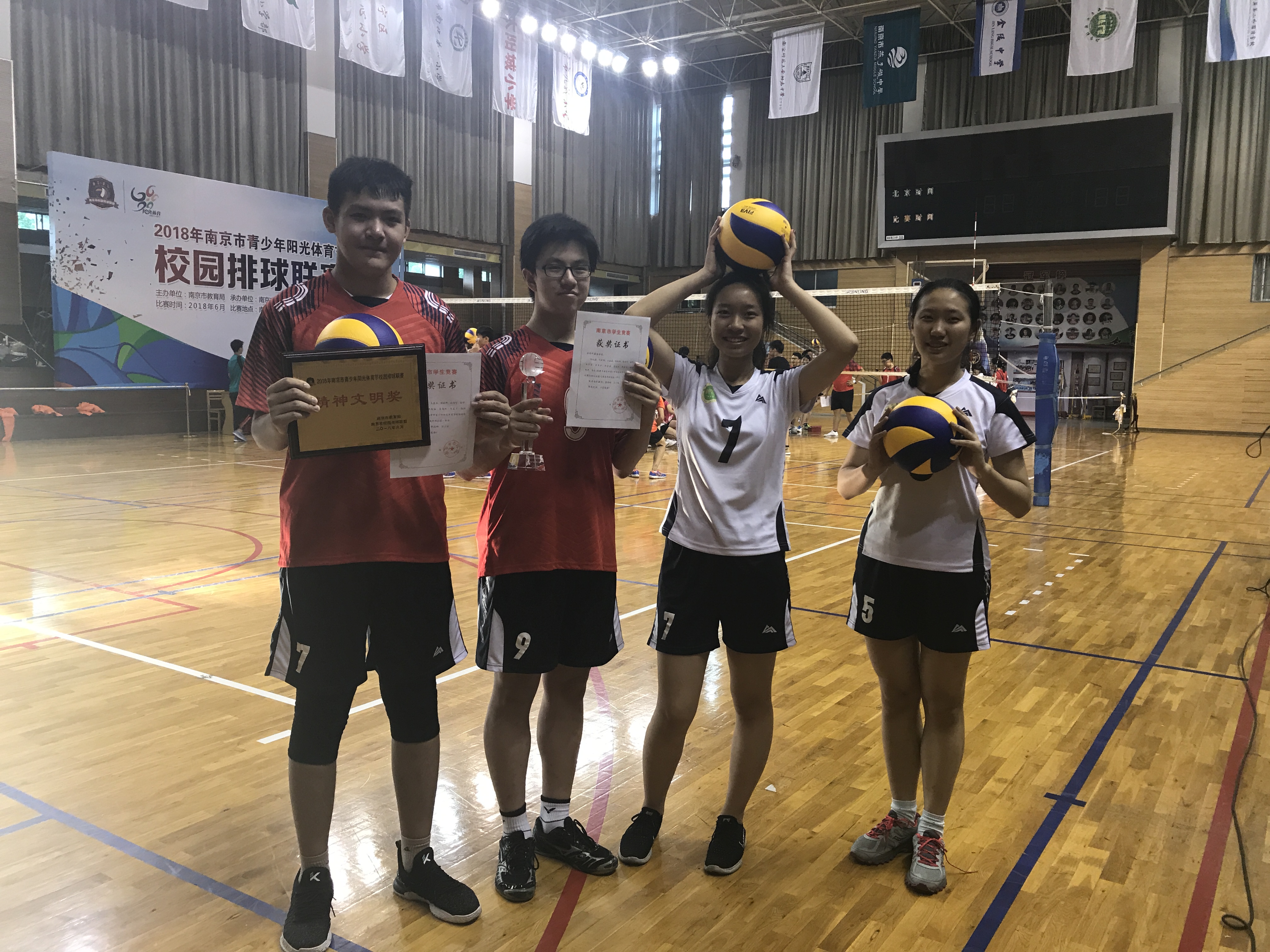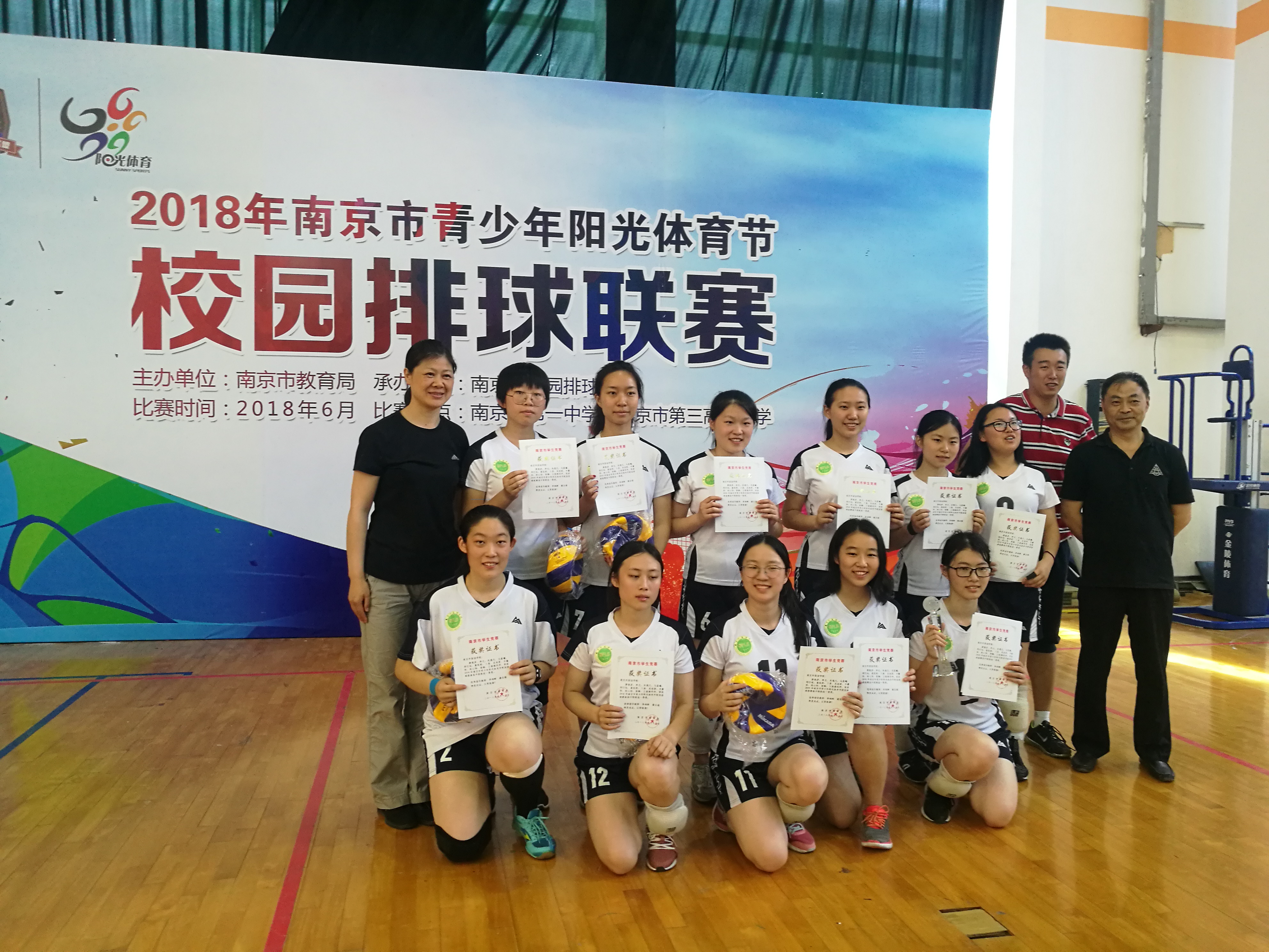 2018年南京市青少年阳光体育节校园排球联赛高中职校男子、女子组的比赛于2018年6月16日在南京一中和南京三中落下帷幕,永利官网高中男、女排在比赛中奋勇拼搏,遵守比赛规则,尊重裁判与对手,赛出了风格,打出了水平,最终都荣获一等奖,同时荣获“精神文明奖”。