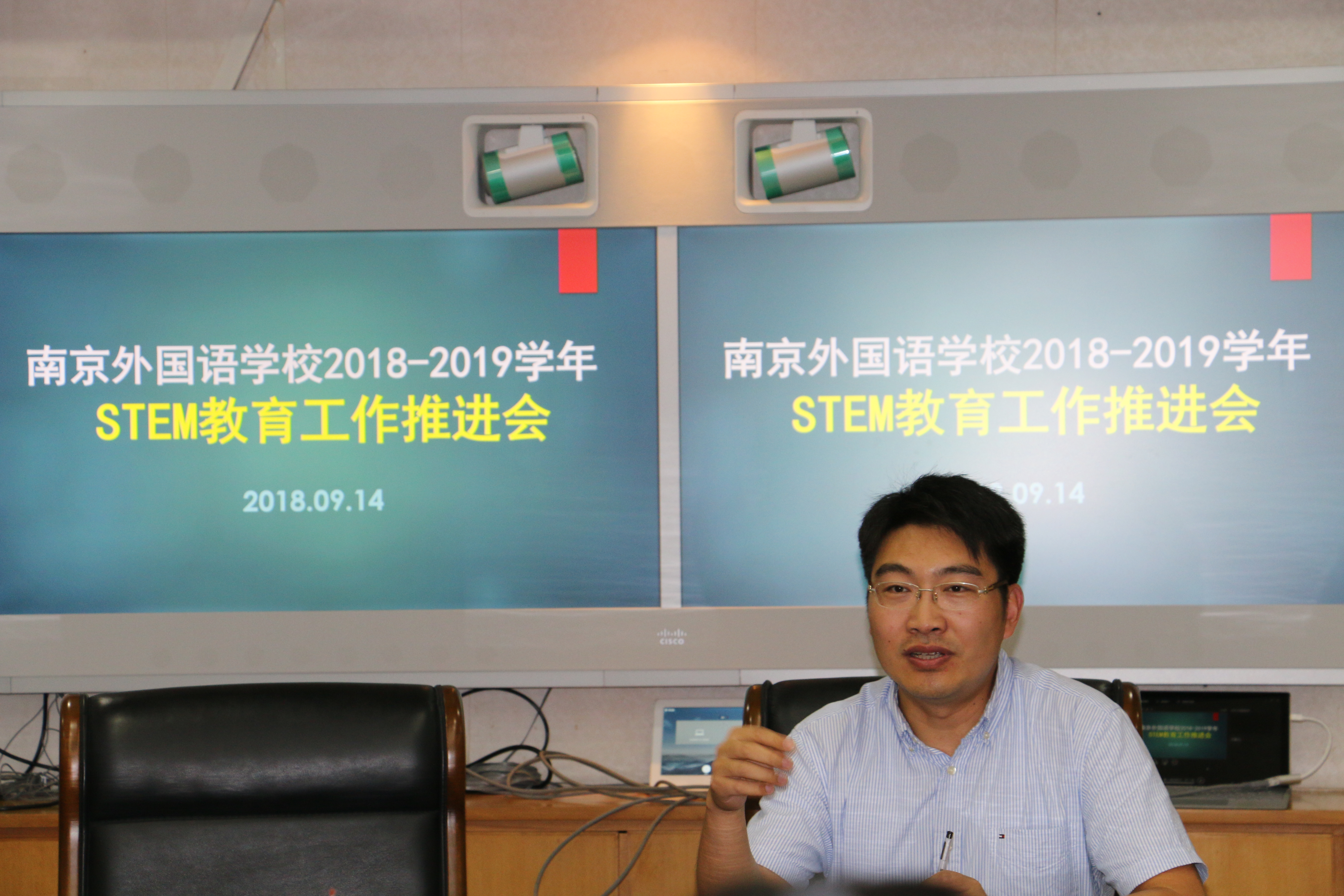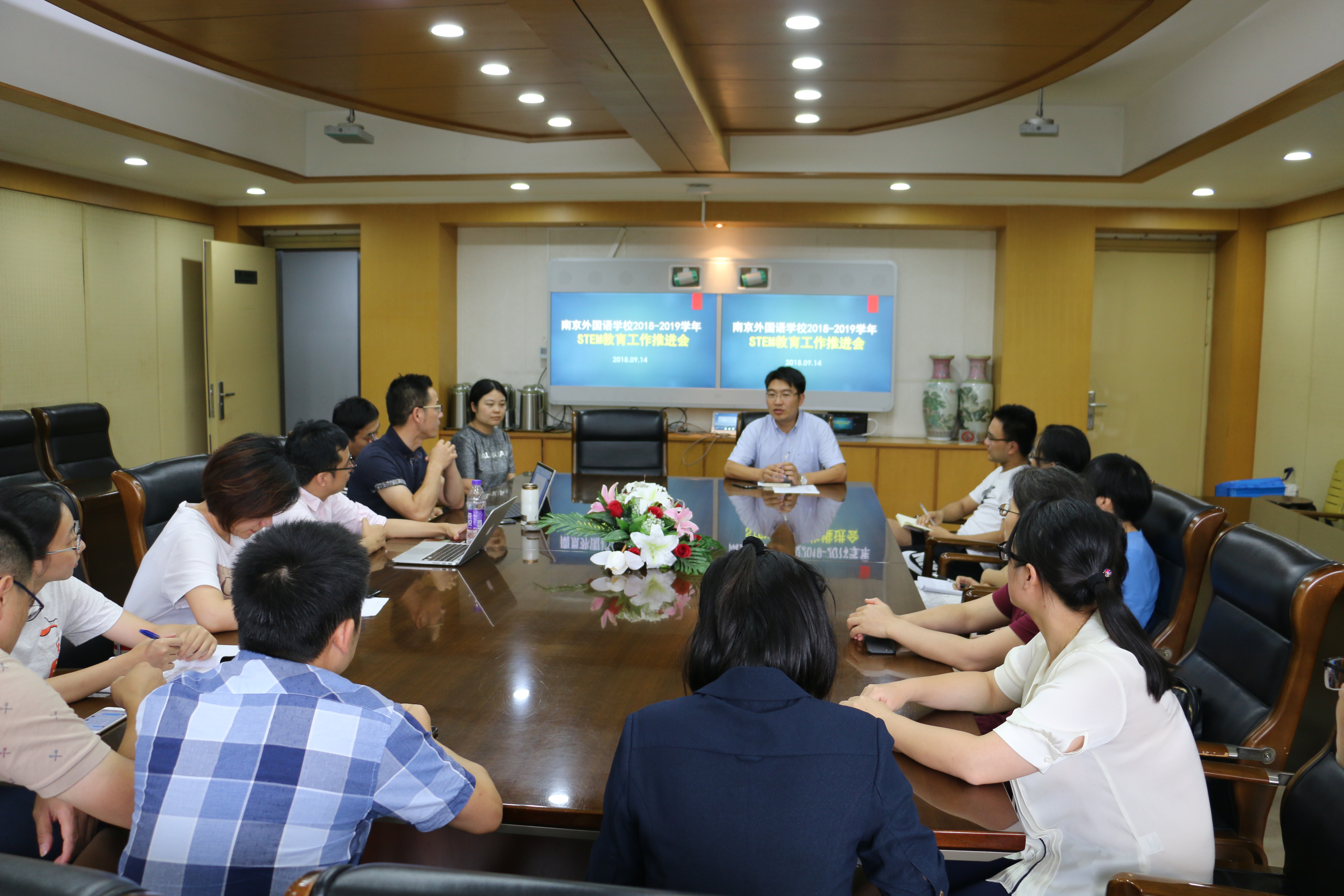 9月14号下午,南外STEM+教师团队在行政楼四楼会议室召开新学年STEM教育工作推进会,会议由朱征副校长主持。