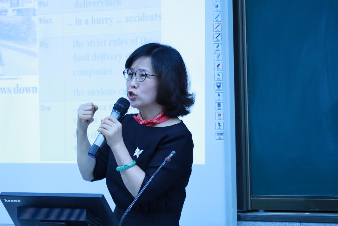 最后,李爱云老师还针对“报刊阅读与英语学习”做了题为《核心素养背景下的英文报刊阅读教学》的精彩讲座。讲座中她分享了永利官网英语报刊阅读教学的做法,以实例为切入口结合前沿的教育理论和方法,向与会老师传递了核心素养的实质以及在课堂落实的具体操作办法。她的演讲引起了与会老师的高度共鸣,激发了大家的教科研热情和通过各种渠道培养学生英语核心素养的信心。