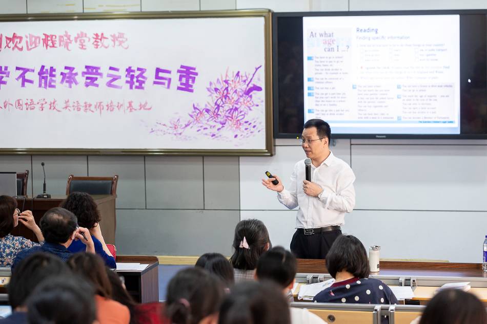 5月10日下午,应永利官网英语教师培训基地的邀请,北京师范大学外文学院博士生导师程晓堂教授来永利官网做了“英语阅读教学不可承受之轻与重”的专题讲座,全体外语组老师参加了这次活动。
