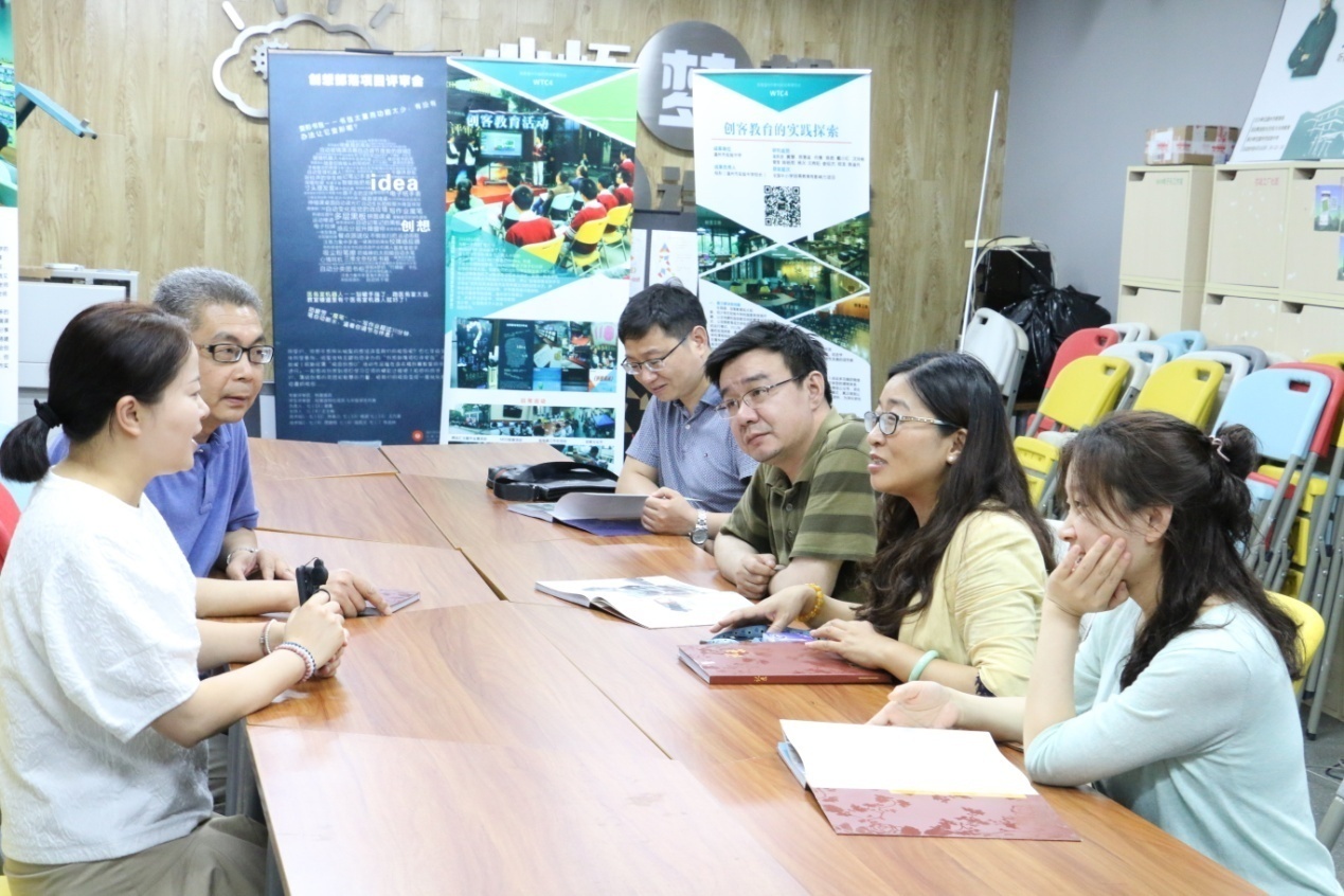 温州中学是我国高中创客教育的发源地。校领导带我们参观了我国高中创客教育大咖谢作如的工作室,并听取了创客空间老师对温州中学高中创客教育特点和课程开设情况的介绍。