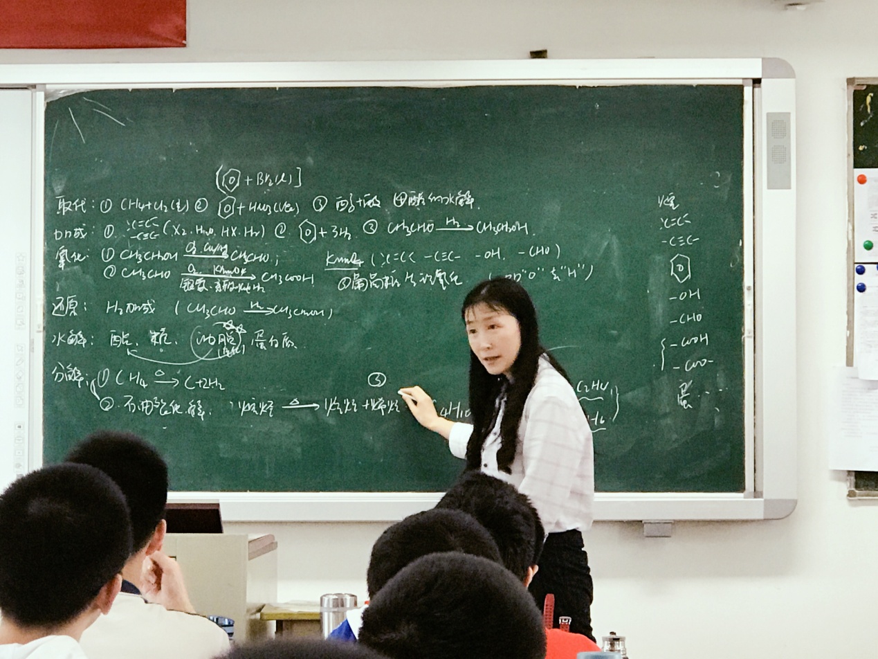 参观结束后,朱建森书记陪同我们走进教室听课,化学组张晓宇老师为我们开设了一节有机化学复习课,张老师扎实的教学功底和互动的思维课堂,让我们颇受启发。
