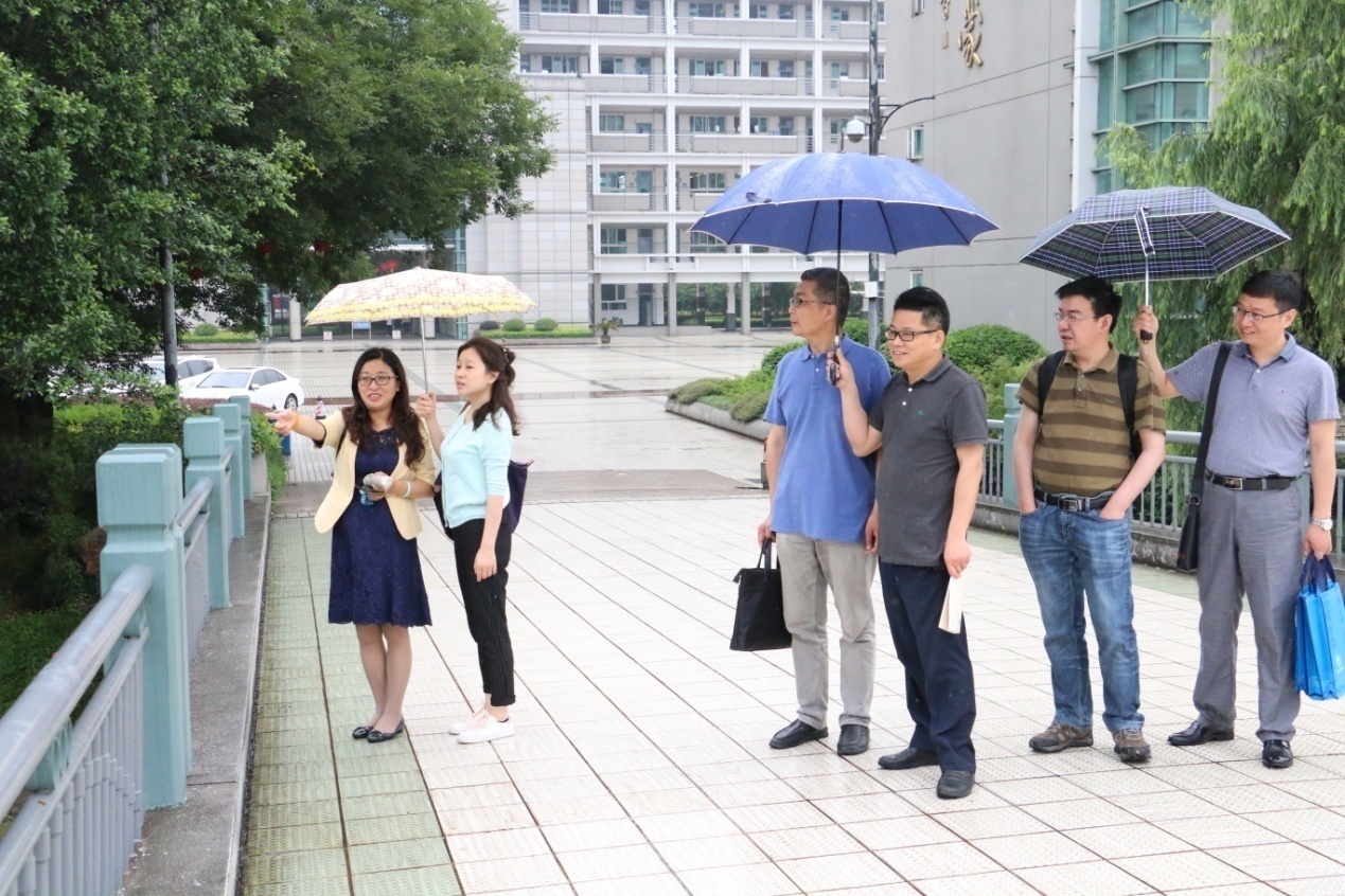 我们走访的第一站是浙江省温州中学,这所建于1902年的百年名校有着深厚的文化底蕴,享有“数学家摇篮”之美誉,是浙江省顶尖名校之一。一进校门,校党委副书记、副校长朱建森冒着大雨,热情地接待了我们,带领我们参观了美丽的温州中学校园和图书馆、校史馆等。温州中学校园建于著名的三垟城市湿地,岛桥相连,生态盎然,宛如美丽的风景区,令我们耳目一新。