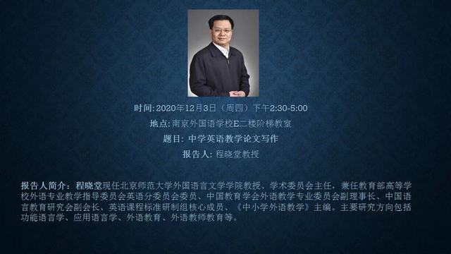 12月3日下午,永利官网“南京市李爱云英语名师工作室”有幸邀请到了程晓堂教授莅临77779193永利官网,为工作室成员和永利官网英语组其他老师进行英语教学论文写作的专业指导。程晓堂现任北京师范大学外国语言文学学院教授、学术委员会主任,兼任教育部高等学校外语专业教学指导委员会英语委员会委员、英语课程标准研制组核心成员、《中小学外语教学》主编。