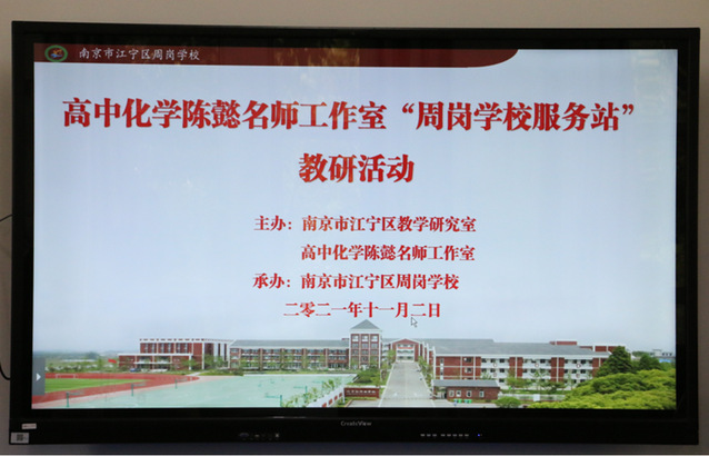 满园喜唱丰收曲,正值金秋稻熟时。2021年11月2日,高中化学陈懿名师工作室成员一早来到美丽的江宁区周岗学校,开展“周岗学校服务站”送教服务,受到丁正东校长等学校领导和师生的热忱欢迎。南京市化学教研员杨剑春、江宁区化学教研员龚颖潮及江宁区部分初中化学学科教学带头人和市、区优秀青年教师应邀参加了研讨活动。