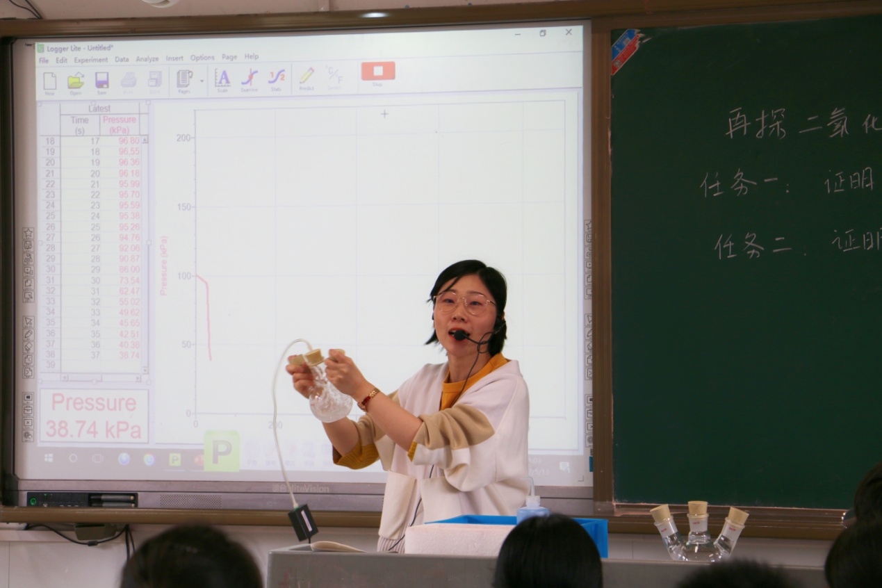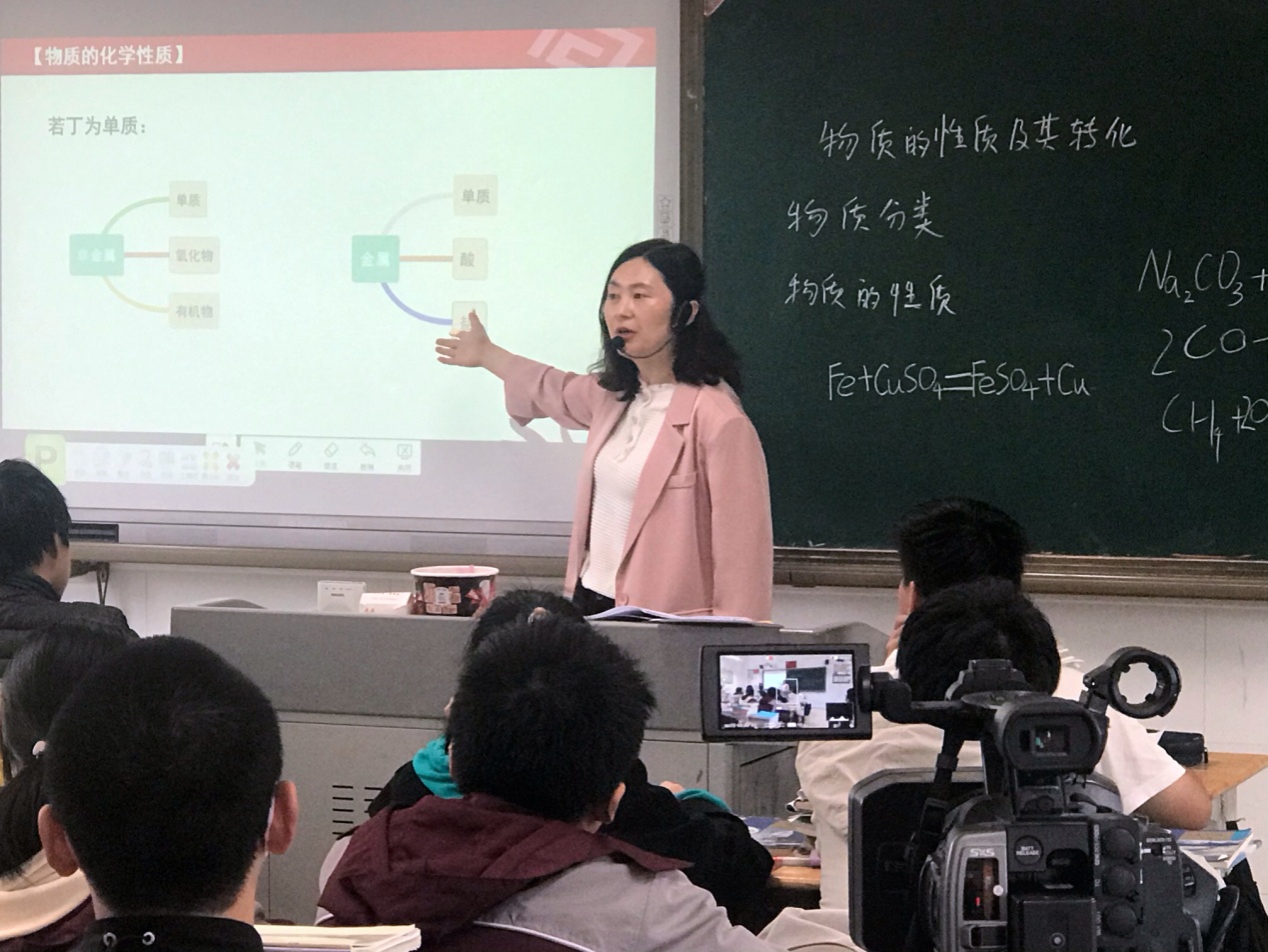 在课堂教学环节,工作室成员刘静、殷晓捷分别执教《物质的性质及其转化》和《再探二氧化碳的性质》两节专题复习课。刘静老师从物质分类出发,以物质的化学性质与转化关系为进路,巧妙地建立了初中化学的常见物质间的本质关系,层层递进的巧妙思维和方法,听课的师生们耳目一新,形成了高屋建瓴的视角。殷晓捷老师从汽水与二氧化碳的趣味实验出发,让学生在实验中体验科学探究的基本过程,环环相扣,螺旋上升,从定性到定量,从简单到复杂,有效突破了中考难点教学。两位老师精彩的教学激发了学习兴趣,提升了思维品质,训练了科学方法,到会参加研讨的老师们也赞叹不已,纷纷表示受益匪浅。