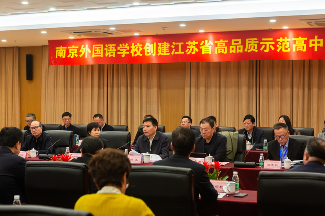 会上,专家组和各级领导听取了南京市教育工委书记吴秀亮的关于政府部门领导支持学校创建和发展的工作报告、刘前树书记的《建设有中国特色的世界名校,培养有全球胜任力的创新人才》汇报。刘书记的主题报告以达成情况、建设成效、改进方向三个方面为主线,介绍了学校高品质创建三年多来的工作思路,举证建设总规划的达成情况。专家组就工作报告进行现场询问和循证,充分肯定了建设成效。顾月华副厅长的讲话为高品质创建验收工作提出了总体要求。