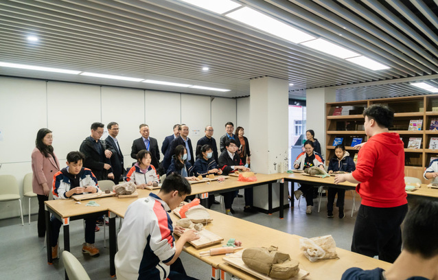 会后,专家组和观摩团实地参观考察校园。专家组一行考察了开放式校史大厅、南外名师墙、理科实验楼、STEM+实验室、大数据实验室、图书馆、国际奥赛金牌星光墙、校园特色活动宣传板和火热的社团活动等。