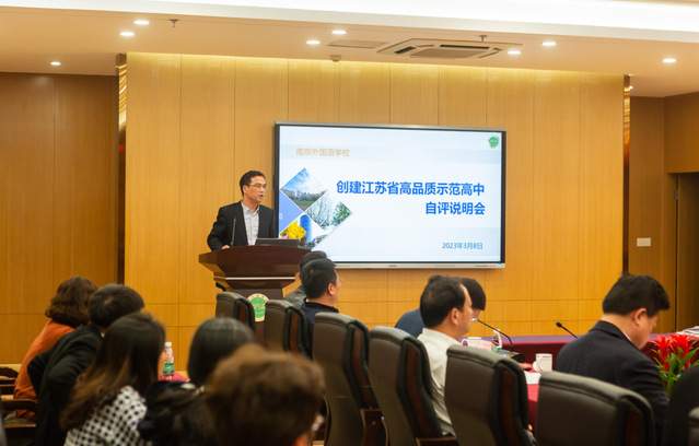 3月8日下午举行的高品质创建自评说明会由洪流同志主持,教育厅副厅长顾月华到会指导。南京市人民政府副市长孙百军,市教育局局长、市委教育工委书记吴秀亮,市教育局二级巡视员张利明,市教育局中教处处长田家英等领导出席会议并陪同考察。来自南京市第一中学、南京市中华中学、南京市第十三中学、南京市宁海中学、南京师范大学附属扬子中学、南京市雨花台中学等高品质示范高中建设立项学校、培育学校和梯队学校的校领导组成观摩团出席会议。